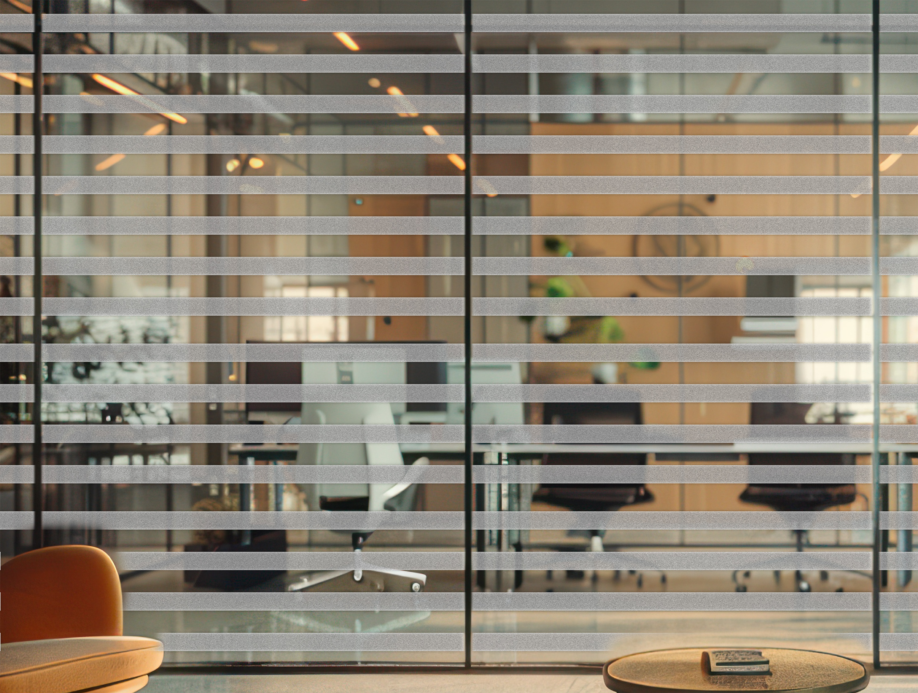 The semi-transparent finish provides just the right amount of privacy, making it ideal for spaces that benefit from openness and light flow—such as offices, meeting rooms, and contemporary home interiors. The sleek linear pattern adds a minimalist touch that complements both modern and transitional décor styles.